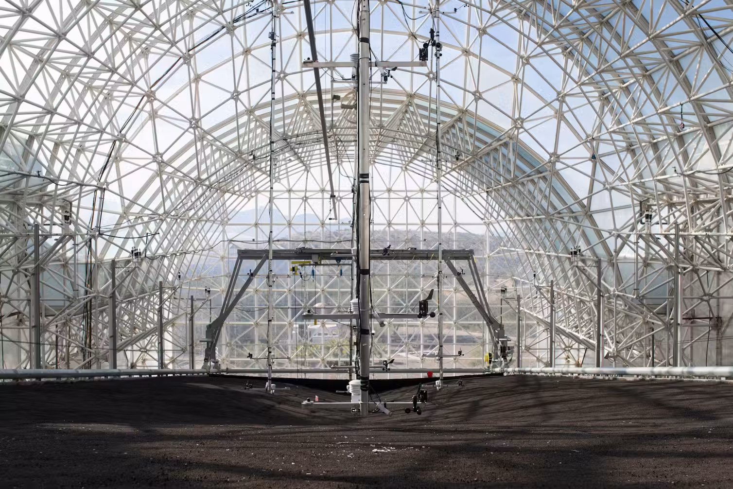 When one of the facility’s 100,000 annual visitors steps inside, they see a whole world – from a tropical rainforest, glistening in 50 shades of green and teeming with life, to a miniature, experimental ocean. Toward the end of the tour, the visitor comes to a comparatively barren-looking experiment called the Landscape Evolution Observatory, where life is struggling to establish itself on crushed volcanic rock originally spewed from an ancient Arizonan volcano.