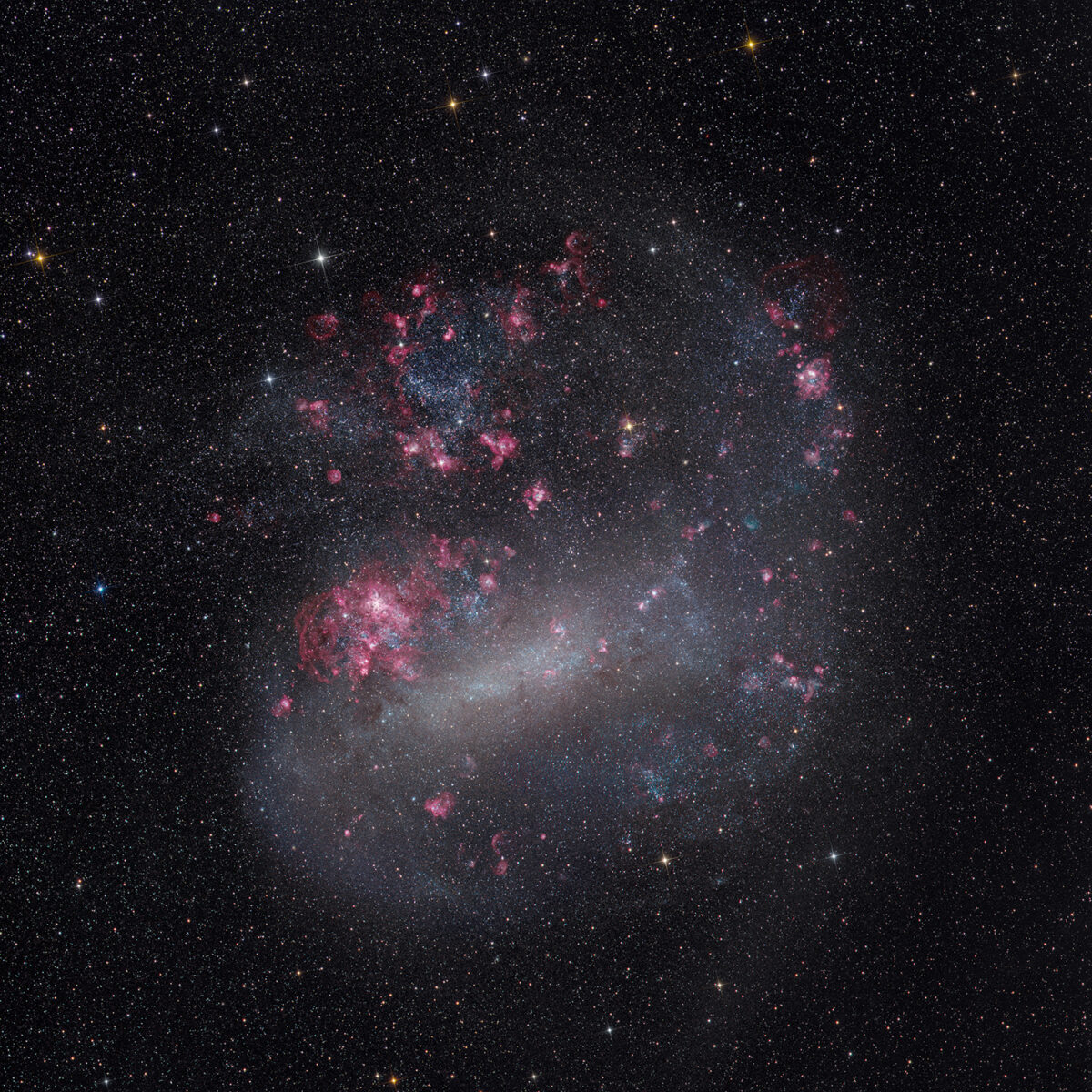 The Large Magellanic Cloud (LMC) is one of the Milky Way’s closest neighbors. It’s a small, irregular galaxy that orbits the Milky Way, and is an easy naked-eye object from the Southern Hemisphere. As one of the only galaxies outside our own where telescopes can resolve individual stars and small scale structures, astronomers love to examine the LMC to compare and contrast it with the Milky Way.