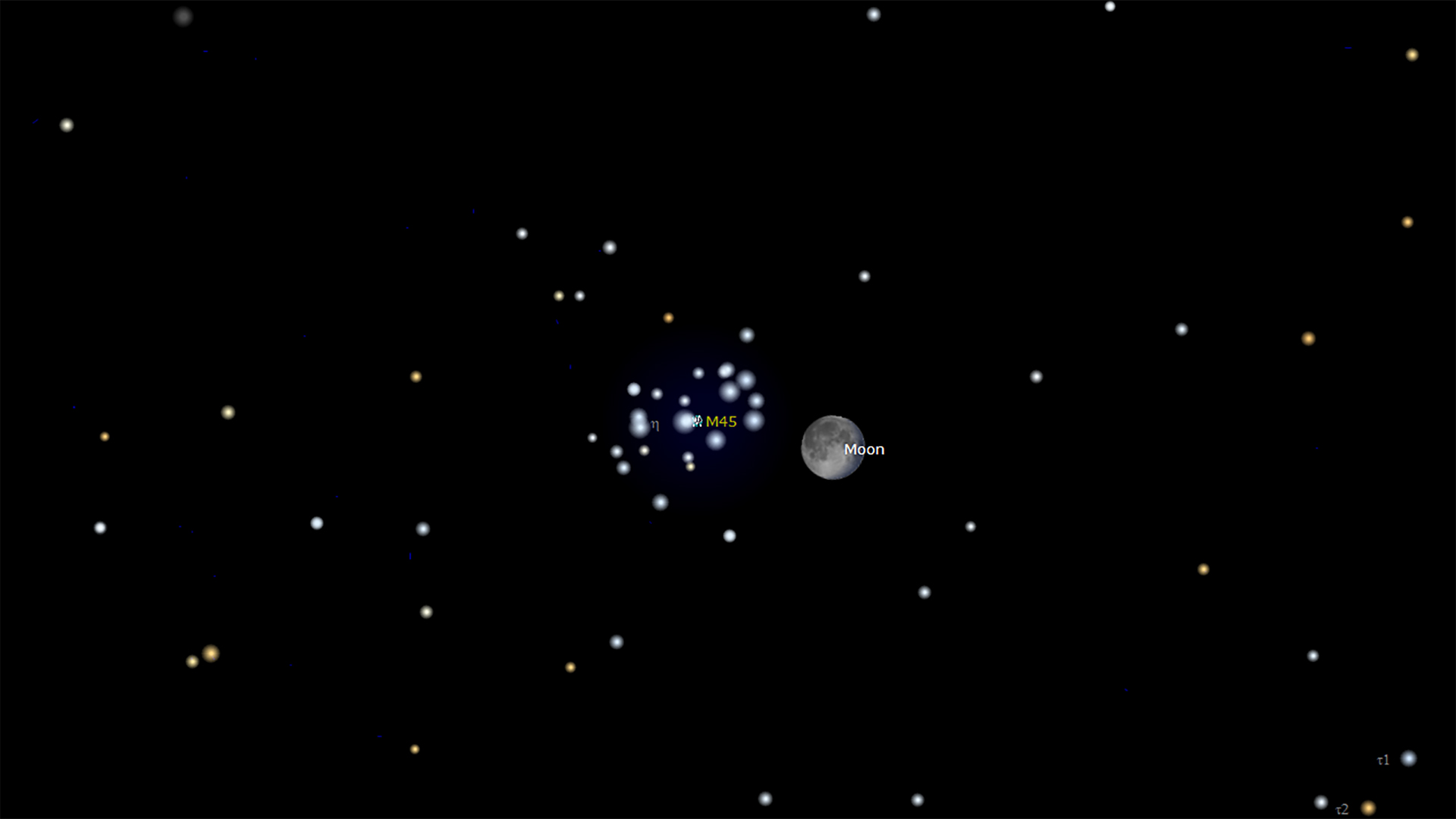 Watch the bright gibbous Moon slide by the Pleiades star cluster on the night of October 9.