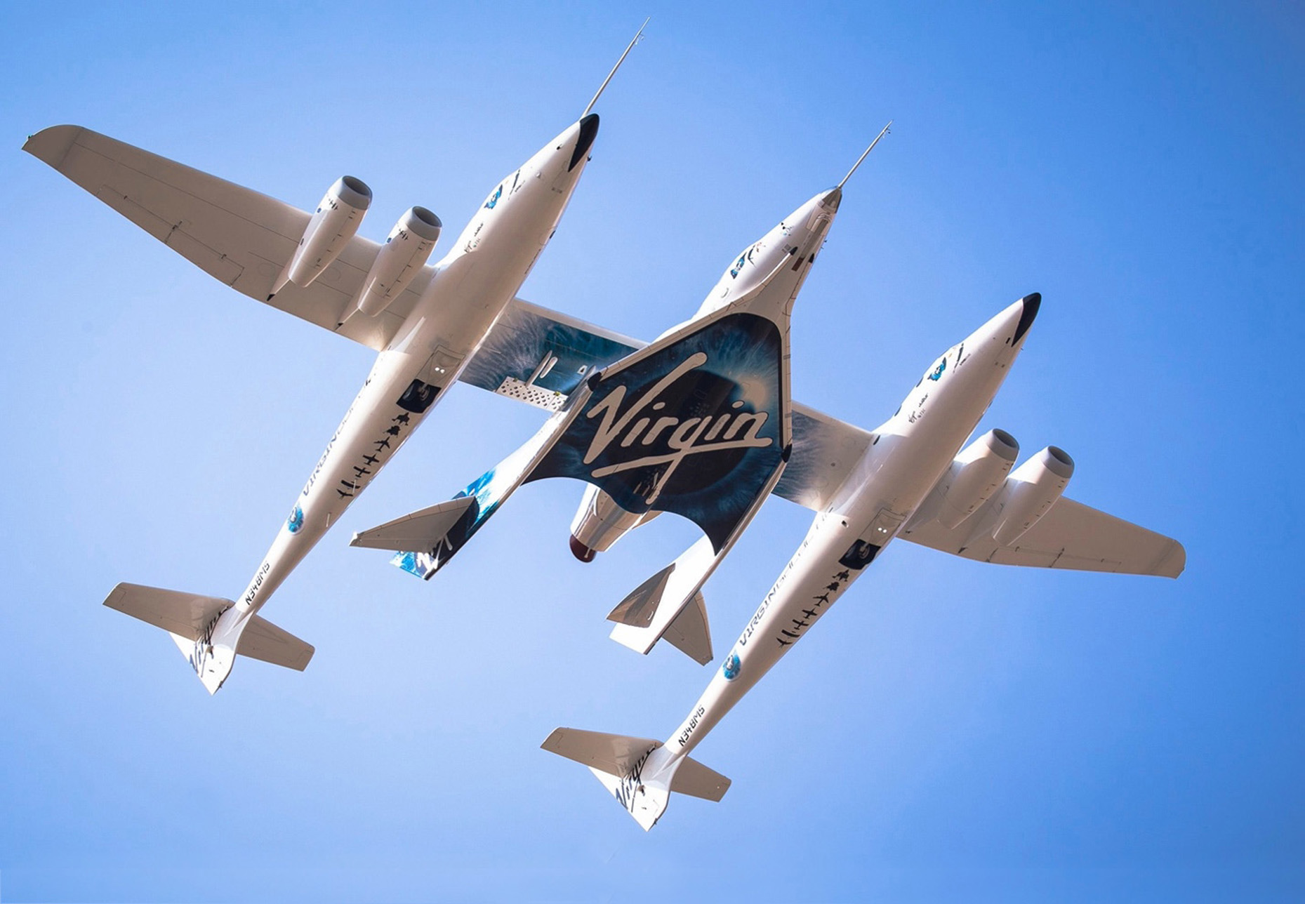 Suborbital flights on Virgin Galactic begin with a runway takeoff with the spaceship VSS Unity attached under the wings of its WhiteKnightTwo mothership, VMS Eve. This aircraft carries the spaceship to the stratosphere at an altitude near 50,000 feet (15,200 meters).