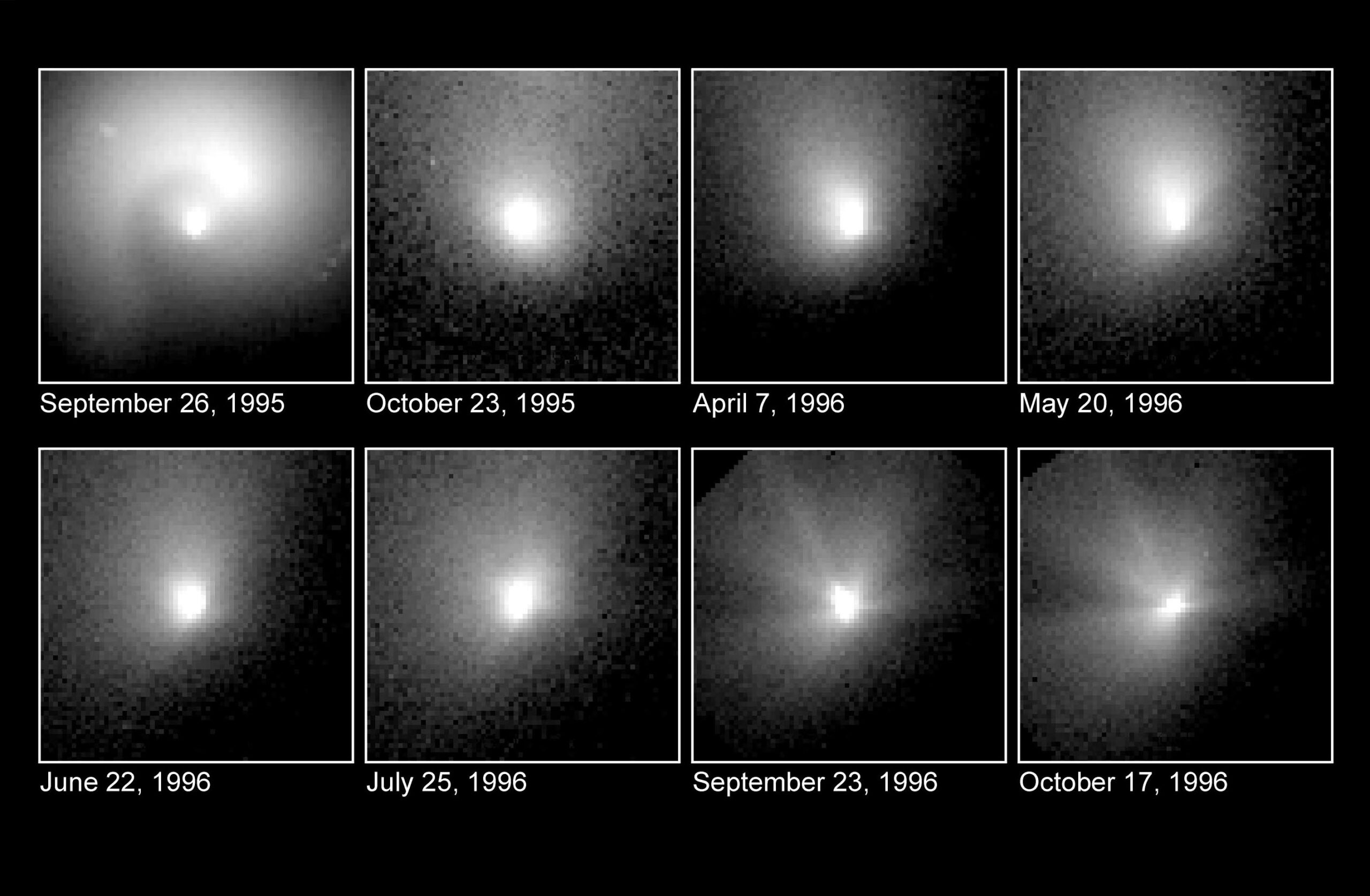 The fact that it was already 10th magnitude while still so far away was exciting for two reasons. First, it suggested that the comet’s nucleus was big. (Later estimates suggested its nucleus was 25 to 37 miles (40 to 60 km) wide, far larger than the average comet.) Second, it meant that Hale-Bopp had the potential to be a bright naked-eye comet when it came close to the Sun in two years’ time – perhaps one of the brightest for many years.
